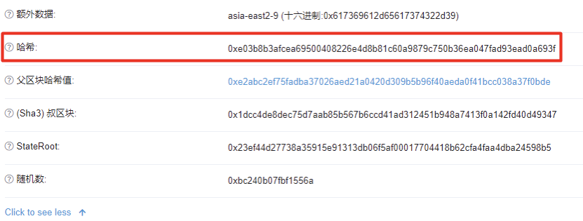 例: 如果区块#14877629的哈希值是
